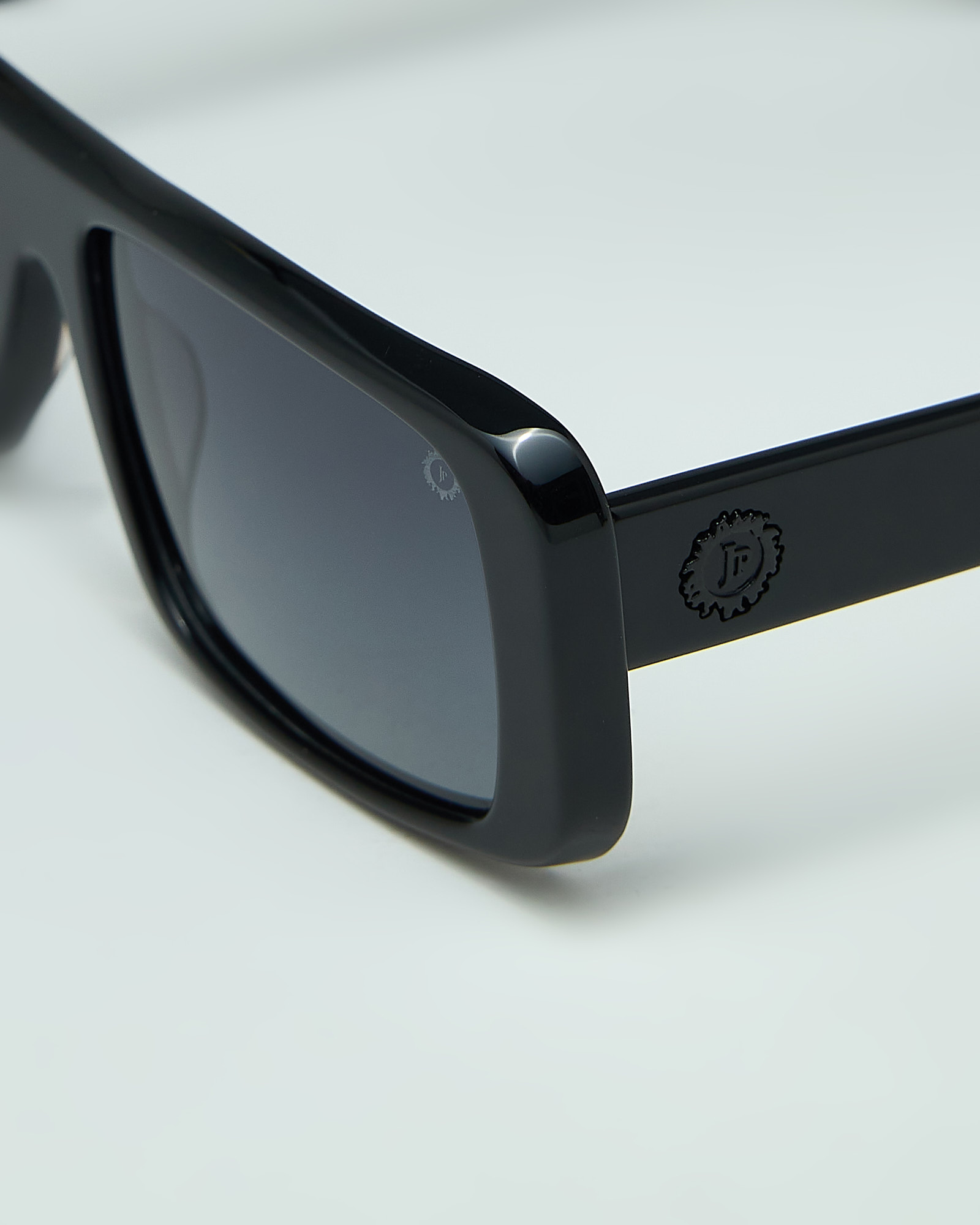 are handcrafted from premium Italian acetate in a bold deep-black finish, defined by a sculpted rectangular silhouette that expresses strength, precision, and contemporary refinement.